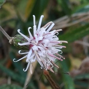 コウヤボウキが咲きだしていました。 くるりん くるりん かわいいね🥰 1年目の細い枝先に1つ花を咲かせます。