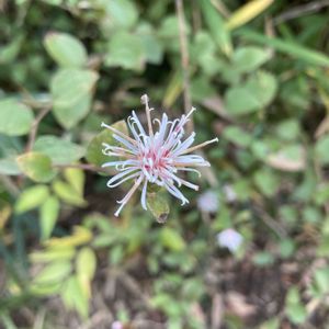 コウヤボウキ。 カールした花びらがとても可愛いです。秋の山でよく会う花ですが、今日は植物園で会えました。