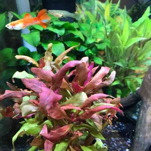 モサモサしておりますが 初めての水草水槽が 動き始めてたのでワクワクです いまは、左のアルテルナンテラレインキーの紅い葉と、黄色い夜桜メダカちゃんにメロメロです😄💕