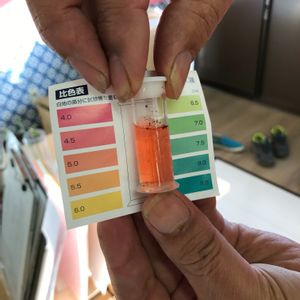 ブルーベリーの土の土壌酸度を手軽に測ってみました。 ph5から4の間でした。