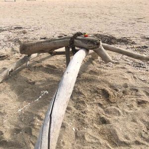 ちびちゃんが流木で作った椅子。 らしいです。笑