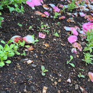 ちびっことばらまいた レタスの芽。😓 分けたらいいかな。