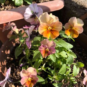 見切り品のビオラ。 色が好きで、かいました。 切り戻すのが、もたいないので、数日見て、切り戻そうと思っています