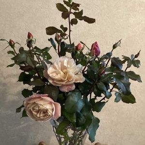 ラストステージ 10月も最後の日となりました もう すっかり庭は冬仕舞い 最後まで頑張っていたバラ達 切り花になっても バラは薔薇 今年 うどんこ病や虫喰いに悩まされながらも 私を楽しませてくれ癒されました 来季 元気に又会える様 願いながら最後の姿に感謝🥲🙏