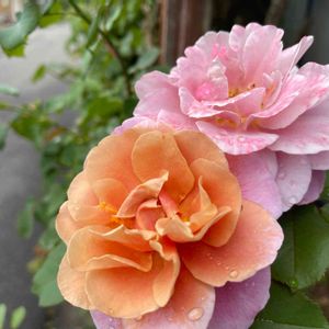 今朝まだ☔️が降る前のディスタントドラムス🌹美しく咲いていました✨ 葉っぱが少し食べられていました😱 この後雨でまた軒下に避難しました。 気温は少しやわらぎますが、しばらくはお天気悪そうです😓