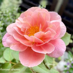 雨粒いっぱいのディスタントドラムス🌹 よく降りますね☔ まだまだ長雨になりそう😢 一度に降らずに小分けにしてほしい。被害がでませんように。