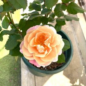 こちら、ディスタントドラムス🌹 先月購入して、 10号鉢に植え替えました。 昨夜は、固い蕾だったのに、 今朝みたら、パッカリ開いてた😳 なんか、蕾から咲き始めから 色が変わるバラじゃなかった❓ 同時に買ったニューウェーブは、 うどん粉にかかり、けさは虫にもやられてたのに💦 強いこ✨✨✨✨🌹💕