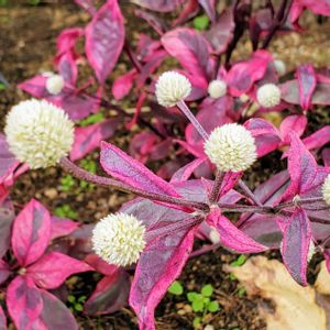 赤葉千日紅とポリゴナムのコラボが可愛い💕 終わりそうで終わらないチョロチョロ花の集まり花壇🌿🌸😂 ギリギリまで楽しみます😆