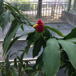 スパイラルジンジャー 探検中?に出会ったのでパシャリ✨ ドギツイ色の鳥🦜みたい(* >ω<) 逆さに咲いていたので、アップの際に上下回転させました😊