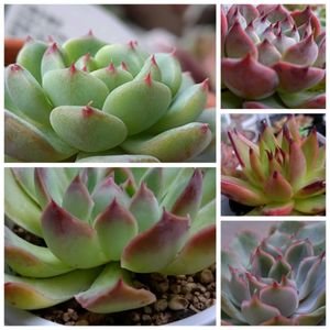 今日11月20日「多肉植物の日」 岐阜県瑞穂市で観葉植物や多肉植物、サボテンなどの生産加工販売を手掛ける株式会社岐孝園さんによって制定 11月20日ごろから霜が降りはじめ多肉植物が美しく変身することからつけられたのだそうです ネットより😊 エケベリア「桃太郎」🍑 酷暑乗り越え紅葉してきました🍁 桃太郎が人気なのわかる気する〜 中心もきれい✨ (*˘︶˘*).。*♡ ⑤枚目 8月夏の緑の桃太郎💚