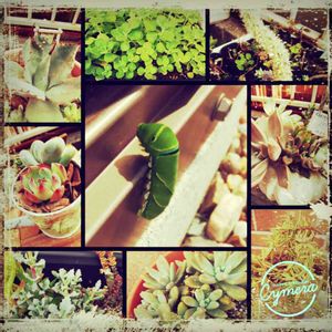 今日。。倉庫の扉に😱😱😱 青虫??発見!! 私は虫に詳しく無いので分かりませんが💦蝶になるのかな?? いつもなら。。小さな毛虫はやっつけてしまうのですが💦 結構。。大きめ💦 やっつけてしまうのも。。キレイな蝶になるなら?? 。。可哀相に思えて💦箸で掴んで近くの茂みに ポイッ(-_- )ノ⌒しました😌💦 。。例え…キレイな蝶々になるとしても💦 キライなのですがネ💦 あ!!我が家の多肉ちゃん達✨ 9月の強い台風のも負けず✨ワサワサ育っておりましたー!! 帰国後。。ようやく庭のパトロールできましたー😂