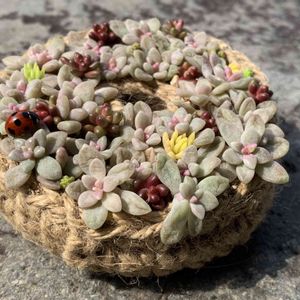 こんな放ったらかしの所に、ようこそ💚♥️💚 寒かった冬も外で頑張った多肉ちゃんたちの所に 真っ赤なてんとう虫さんが遊びに来てくれました♪ 春のお知らせ💁うれしいです💕