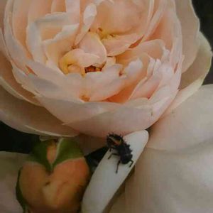バラの仲間 ラ・フライヒャーです^ ^ 甘い香りに誘われて てんとう虫が蜜を食してました^ ^