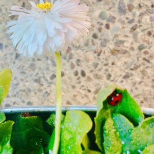 春だ~⤴ てんとう虫🐞が来てました🍀 ベランダのパンジー🎵