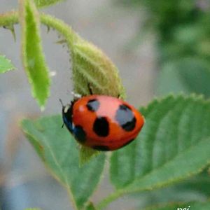ヤハズエンドウの蔓を登るナナホシテントウ☺️