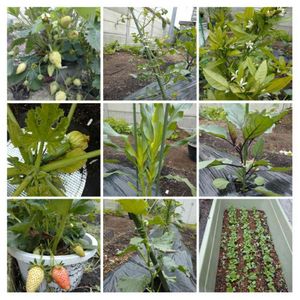 家のミニ畑の野菜軍団です。ぼちぼち順調に育っています😊🎶