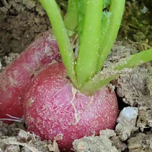 ハツカダイコン 何年も前に種を買ってきてそのままになっていたハツカダイコンを出るのかなあ❓って撒いてみたらちゃんとハツカダイコンになりました😅 こんなに土から出てしまって…😆