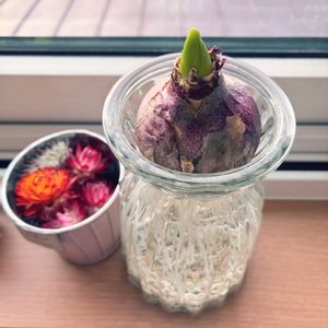 ヒヤシンスの水耕栽培で 芽が出て来ました👀💕 真っ赤なヒヤシンス、 今から楽しみです💕