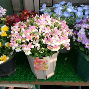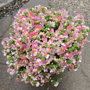 風がビュービューです🍃 今日は香りのネメシア2種 ・ゲブラさんのネメシアメーテル グッピー 2度目の満開です 玄関出したり入れたり 過去picは11/21 1度目の満開と切り戻し後 ・ピンクレモネードはタキイ🏷 満開過ぎてしまいましたが切り戻し✂️