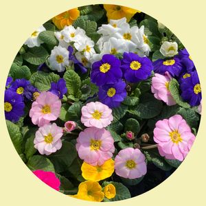◉プリムラ・ジュリアン サクラソウ科 冬から春にかけ鮮やかな 花を咲かせます 花色や咲き方のバリエー ションが豊富です ポリアンサの交配種と されています
