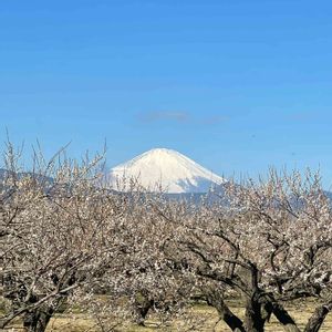 曽我梅林へ行ってきました🗻 真っ白な富士山と梅の花がとてもキレイでした🌸 写真を撮って暫くしたら、富士山は雲に隠れてしまいました。 つきたてのお餅とアイスクリーム、美味しかった😊🍦