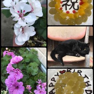 ゼラニウム大好き 一年中咲いてる🌸 ケーキ作ってもらいました😋 黒ちゃんは知人のお宅😽