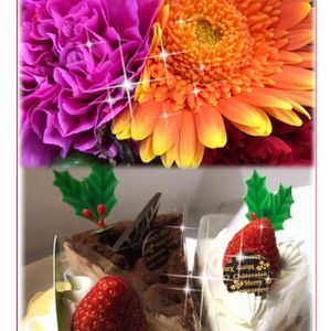 メリークリスマス🎄🎁ミニブーケ💐とワンホールのケーキ🎂は食べきれないのでショートケーキ🍰で…