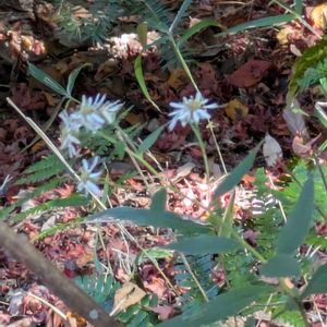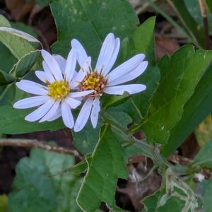 神戸市立森林植物園ではノギクが沢山咲いていた。名札の近くに咲いているからといってその花とは限らない。 ①②リュウノウギク キク科 キク属 福島県、新潟県〜九州の日当たりの良い丘陵や山地に生える。石灰岩地に多い。葉は3裂し縁に大きな鋸歯がある。これは多分、この花だろう。 ③④シラヤマギク? キク科 シオン属 北海道〜九州の山地の乾いた草地や道端に生える。葉身は先が尖り、縁には粗い鋸歯がある。舌状花は白色、数は少ない。 白い花びらが多すぎる気がする。 やはり、シラヤマギクではなく、ノコンギクでは?と意見を貰いました。