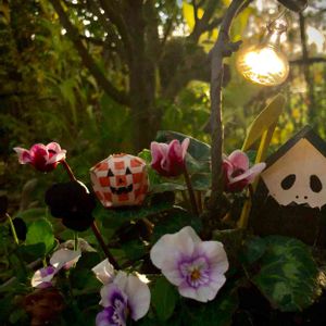 可愛いコ達とダークハロウィンに参加します❣️🤗 昔 グレムリンという映画がありました パパにプレゼントされた可愛いモグワイが三つの誓いを破った為に凶暴なグレムリンに変身してしまうというお話 ご存知の方 多いでしょ❓ 誓いのひとつは水に濡らさない事 ふたつ目は日光にあてない事 みっつ目は真夜中過ぎて餌を与えない事 ハロウィンの為に集まった、このコ達、雨が降れば水に濡れるし、朝がくれば陽を浴びます。 悪いコに変身しないのは、きっと、真夜中過ぎに餌を与えないからね😉 と勝手に妄想 そして もし変身しちゃったら、どんな悪さをするんだろう とまたまた妄想😆 妄想で終わればよいけど‥ って❓(o_o) いやいや脅かさないで このコ達はモグワイではないし、あれは映画の中の話でしょ 仮に悪いコに変身したとして、どんな悪戯をするっていうの❓😌フン ええッ⁉️ 庭の植物 全部引っこ抜いちゃう⁉️😱🙀 ・・・・・ やめて‥ (´༎ຶོρ༎ຶོ`) そんな恐ろしいこと言うの‥ 悪魔やろ‥ 😭😭😭 違う違う このコ達じゃなくて そんなおっとろしい事言う あなた❗️ 悪魔じゃ〜(ToT) 呪われろおぉ〜(´༎ຶོρ༎ຶོ`) いいコでいてね❣️今夜は眠れない〜明日はハロウィンだから🎃〜