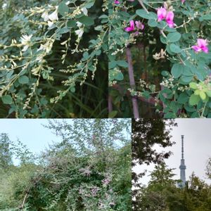 今日のお花 秋の七草の一つ ハギ ①②我が家の自由奔放に咲き乱れるミヤギノハギ あいにく今朝は曇り空、晴れた日の一枚を ①青空の下気持ちよさそうに舞っています ③知人の庭の白萩 道路に近いところに植えられ、近くには道路標識があり、下部は剪定され高いところでチラホラ 仕方ないですよね ③市川万葉植物園の 萩のトンネル 9/20の撮影 まだ満開には至らず 近日中に訪れましょう♪☺️