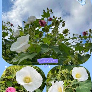 スイフヨウって 色が変わるんですね! 前に投稿した同じ株から ピンクが咲き終わり 白い花に✨