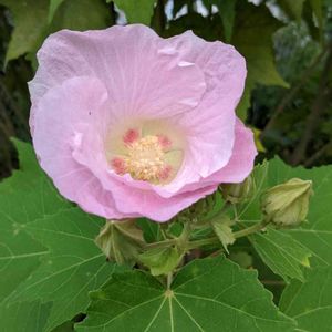 🌼スイフヨウ(アオイ科・フヨウ属) 朝開く時は白い花 時間がたつと淡いピンクに〜 夕べには酔っぱらった様にみえ〜 だから酔芙蓉🌺 次の日、しぼんでも可愛いね いつも、見て下さりありがとうね~🤗 これからもヨロシク❣️🍀