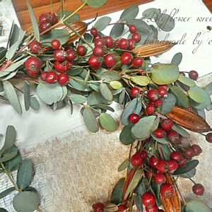 赤くなったばかりのローズヒップで飾って見ました*✲゚*