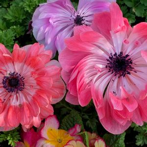 彩りの花壇💜🤍💖 ペチュニア、白とピンクのベゴニア〜 この一画は、冬を飛び越し🌸🌱💮🍀🌼🌿🌺春が来てる🎶💕 大泉緑地公園 ふれあいの庭より