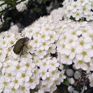 コデマリでちょっとひと休みするコアオハナムグリ 少しずつ近づいて撮ってたらいきなり顔に飛んできた💦 (人゚∀゚*)もしかして、お花と間違えた❓(*/∀\*)イヤン