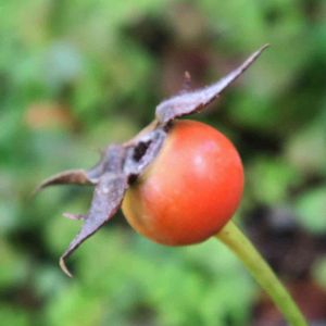 バラの実を発見。 少ないですが、赤い実を付けていました。 近所の道路脇で。