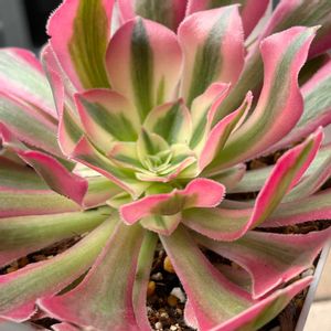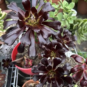 おはようございます 1️⃣2️⃣ アオエニウム (アエオニウム) 段々とピンクに🩷 そしてお子さまも大きくなりました 3️⃣4️⃣5️⃣ 七福神 増やしたい(気合いが入り過ぎ🤭)時は消え去りꔛ⭐️ まぁ~適当に🪴 気持ちを楽にしましたら増えてくれました