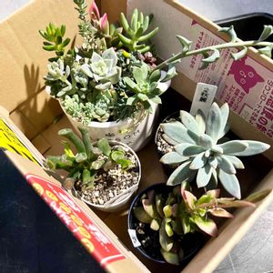 ご近所の人が突然、「多肉を見せて欲しい」と来られたので急遽プレゼント多肉を見繕いました🎁🫡 遮光スクリーンかかったまま外す間も無く多肉は全く見ずに帰ってしまった🤣 トロピカルガーデンのセットものに入ってた名無しエボニーも封入🎁 セット売りとか福袋系に入ってた育てるのが苦手な多肉は人にあげたり、寄せ植えにいれて人にあげたりで極力手元に残してません😗