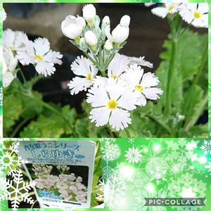 2/18(火)② サクラソウ しらゆき 初めて見ました。 白い花が上を向いて咲きます。 ほんの少しピンクも入っているように見えました。 小鳥のさえずり咲きというらしいです。