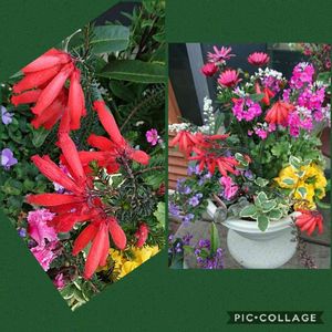 2/18(火)④ 寄せ植えの中の真っ赤なエリカ初めて実物を見ました‼️ アロエの花みたいですねー😃🎶 寄せ植えの中で目立っていました。赤も元気をくれる色ですね🤗🎵 今日も元気に良い1日をお過ごしくださいね🍀😌🍀 さて、今までに行った梅まつりの(みどりのまとめ)の編集しなきゃ!!
