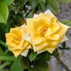 今日ははっきりしない天気彡☁☀🌂 黄色のバラもやっと咲きました💛💛
