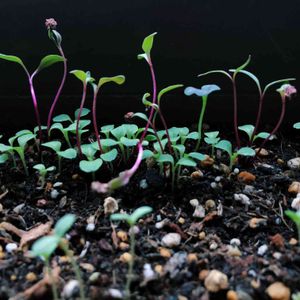 デトロイト(ビーツ) ロロロッサ(赤いフリルレタス) レッドパクチョイ(チンゲンサイ) ベビーリーフのミックスの種 花が咲いてるのはレッドパクチョイ。 種が取れるといいな。