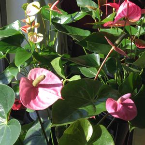 本日は☀️で暖かいからアンスリウム軍団も葉水してお日様をたくさん浴びてます😁普段はパンジーやジュリアとは一緒にならないからこんちわーって感じかな😁