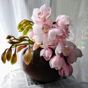 家で咲いたシンビジュームの花です✿✾。 全部、カットして、これから、親株さん、植え替えします〜 🍀。