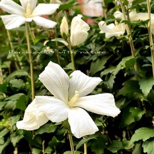 ドッグランの白い木槿 雨粒を付けて… 🏷ニコイチさん にお願いします♡