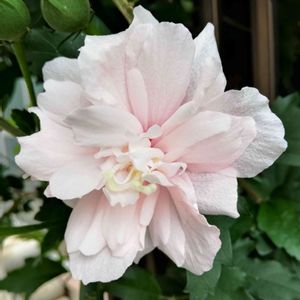 八重咲きムクゲの淡いピンクの花 2023-07-14