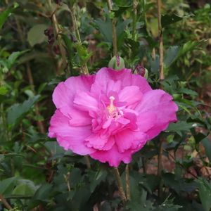 綺麗に咲いた八重の「ムクゲ(木槿)」に出会えました。 パチリ