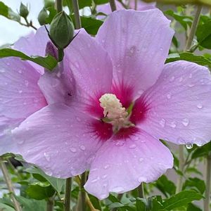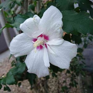 ムクゲ(木槿) 朝から降り出した雨 昼頃から本降りになりました☔️ 花言葉🌺優しい、忍耐 韓国🇰🇷の国花です🌸