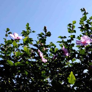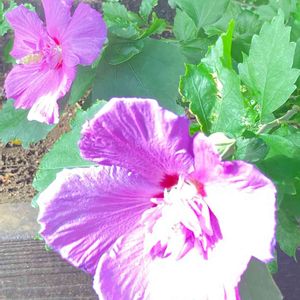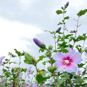 猛暑の間 蕾が咲けずに落ちてイタムクゲの花が咲きだしています🌼💜 デモ チョット 違うよね🧐🤔 ラベルのムクゲと… ナンカ 蕾もどうカシラ…