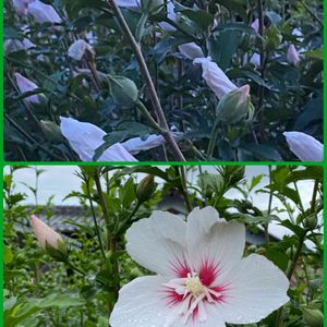 ⬆️昨日19:30のムクゲ萎んでしまいました ⬇️6/21 16:18のムクゲ 白地で花の底が赤い花を咲かせる品種は「日の丸」と呼ばれますが茶人の千 宗旦がこの花を茶花として非常に愛したことから「宗旦ムクゲ」とも呼ばれているそうです 梅雨時分から咲き始め9月頃まで咲くようですね